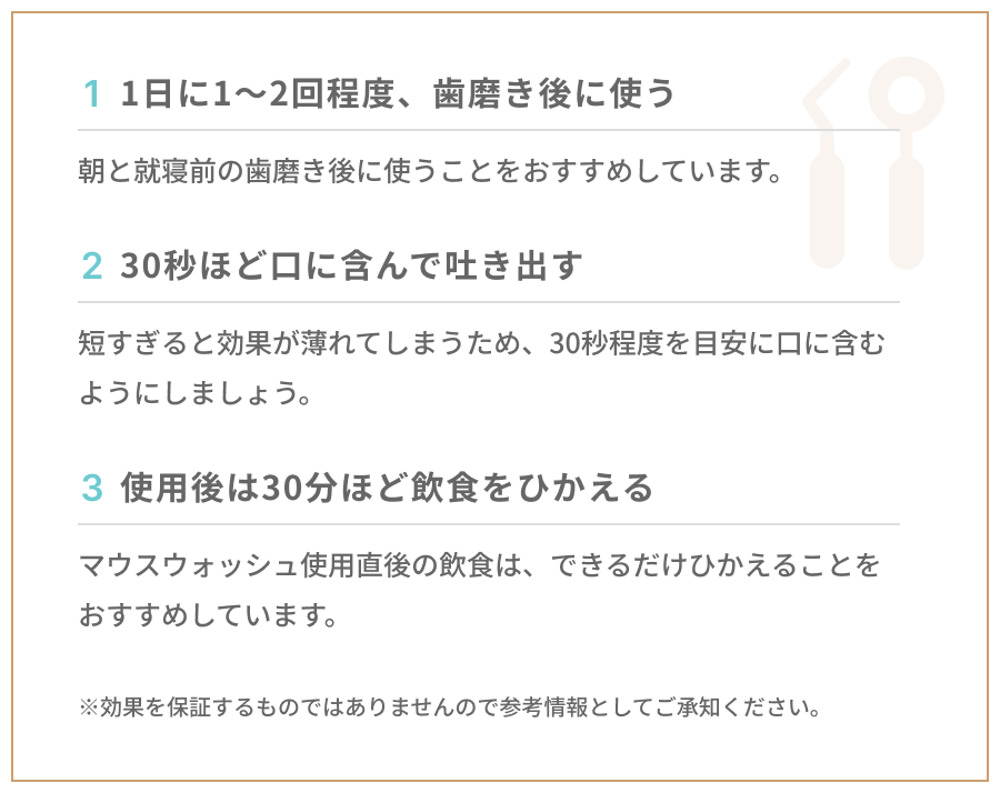 今回は、マウスウォッシュのおすすめの使い方や、使用時の注意点について解説いたします。